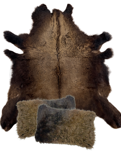 Includes:• 1 Deluxe North American Bison Hide (Large)• 2 Bison Accent Pillows with Bison Design (12"x20”) Description:Bring the spirit of the Ameri...