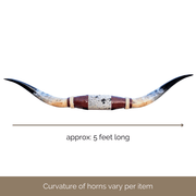 Make a statement with our genuine mounted steer horns, spanning an impressive 5 feet in diameter. Perfect for adding an authentic Western touch, these steer horns are crafted to bring rustic grandeur to any space, whether it’s a home, office, or lodge. Each horn set is naturally unique, showcasing the distinct curves and colors that make them truly one-of-a-kind.