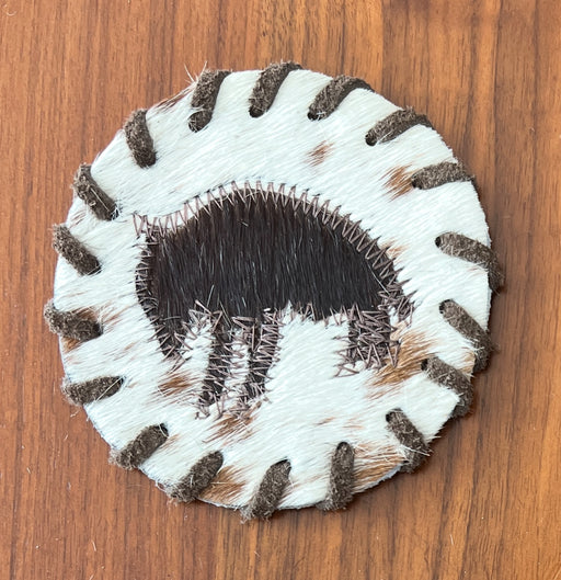 View full detailsHandcrafted Circle Cowhide Coasters - Natural Leather Drink Mats - Bison Design