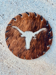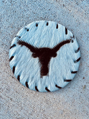 Handcrafted Circle Cowhide Coasters - Natural Leather Drink Mats - Longhorn Design