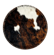 Add rustic charm and natural elegance to your dining space with these handcrafted Round Cowhide Placemats. Made from genuine cowhide and finished with durable leather stitching, each piece is designed to lay flat and provide a warm, inviting backdrop for your table setting.