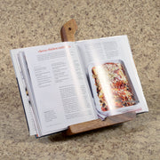 Crafted from premium quality acacia wood, this innovative holder serves a dual purpose – it securely props up cookbooks, magazines, or recipes while also accommodating a tablet or smartphone.